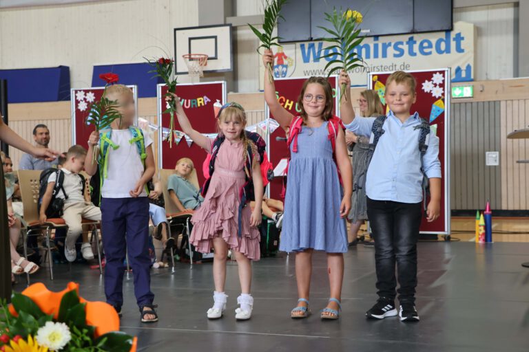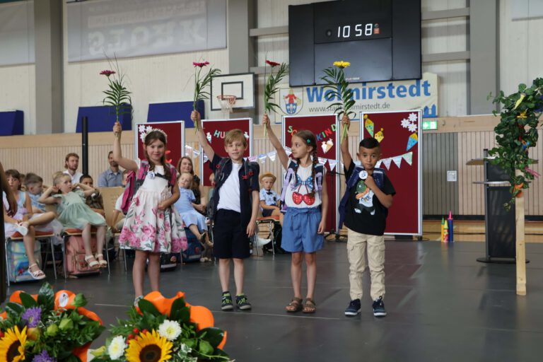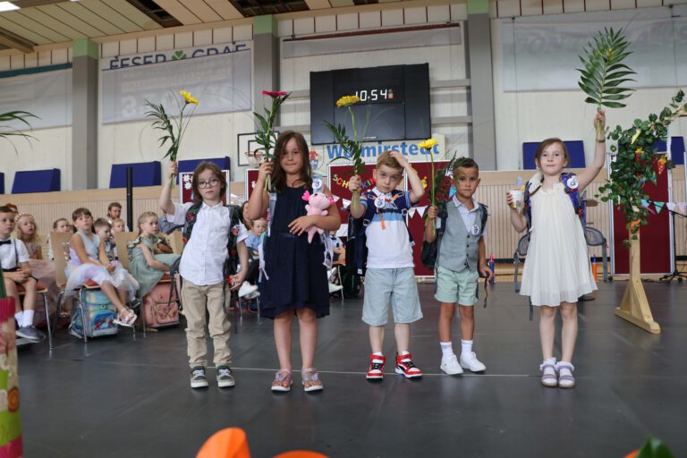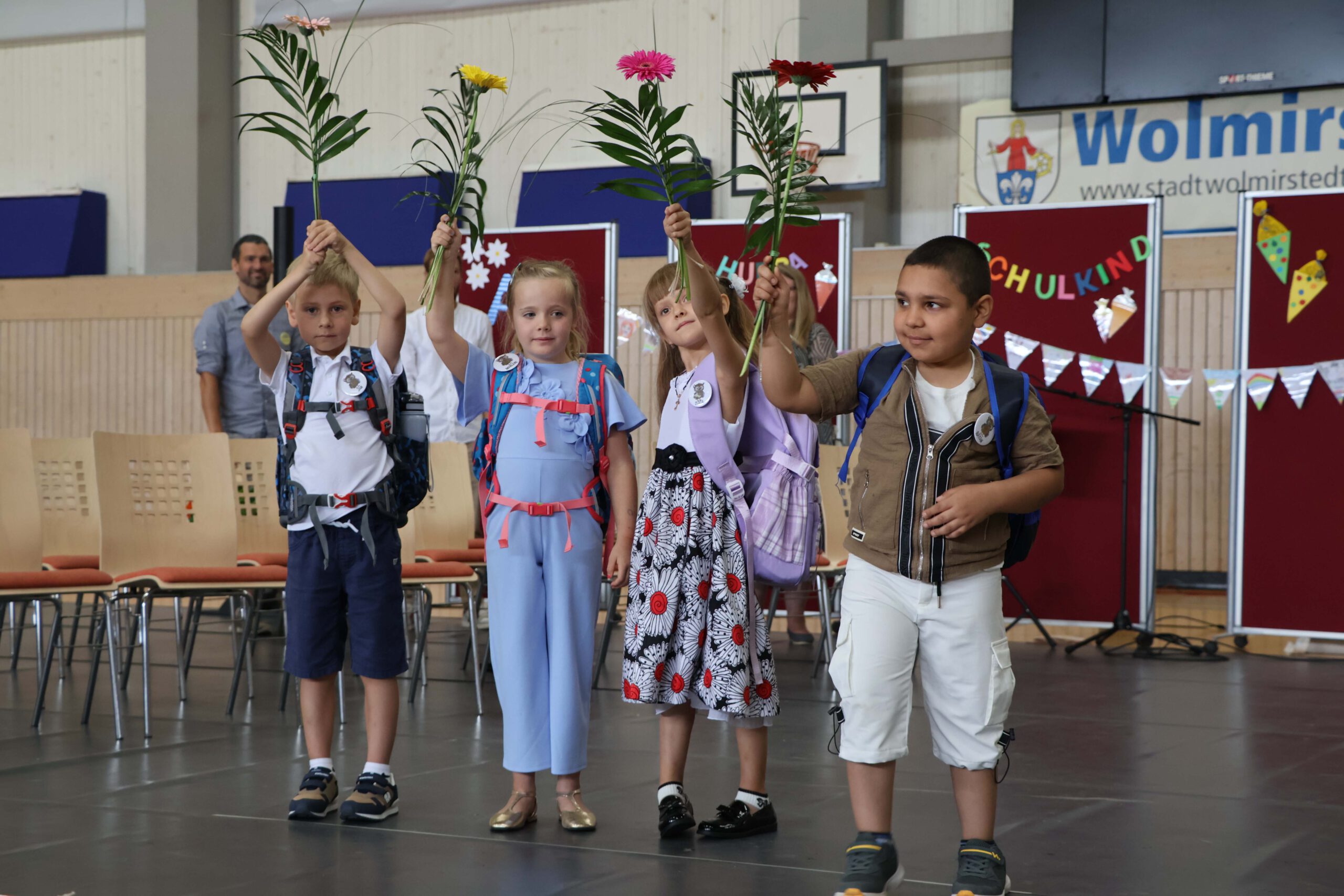 Mit Blümchen, Schultüte und natürlich Ranzen verließen sie die Halle und waren schon sehr gespannt auf den 1. Schultag am kommenden Montag.