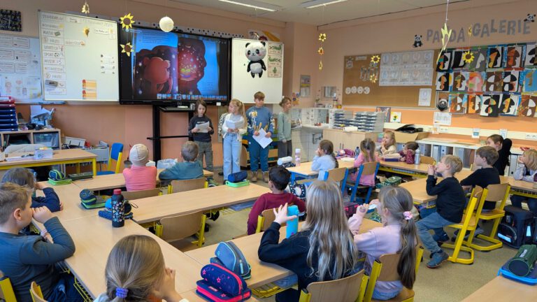 und auch Frau Laqua kam vorbei um den 3. Klassen aus dem Buch „Die Schule der magischen Tiere“ vorzulesen.