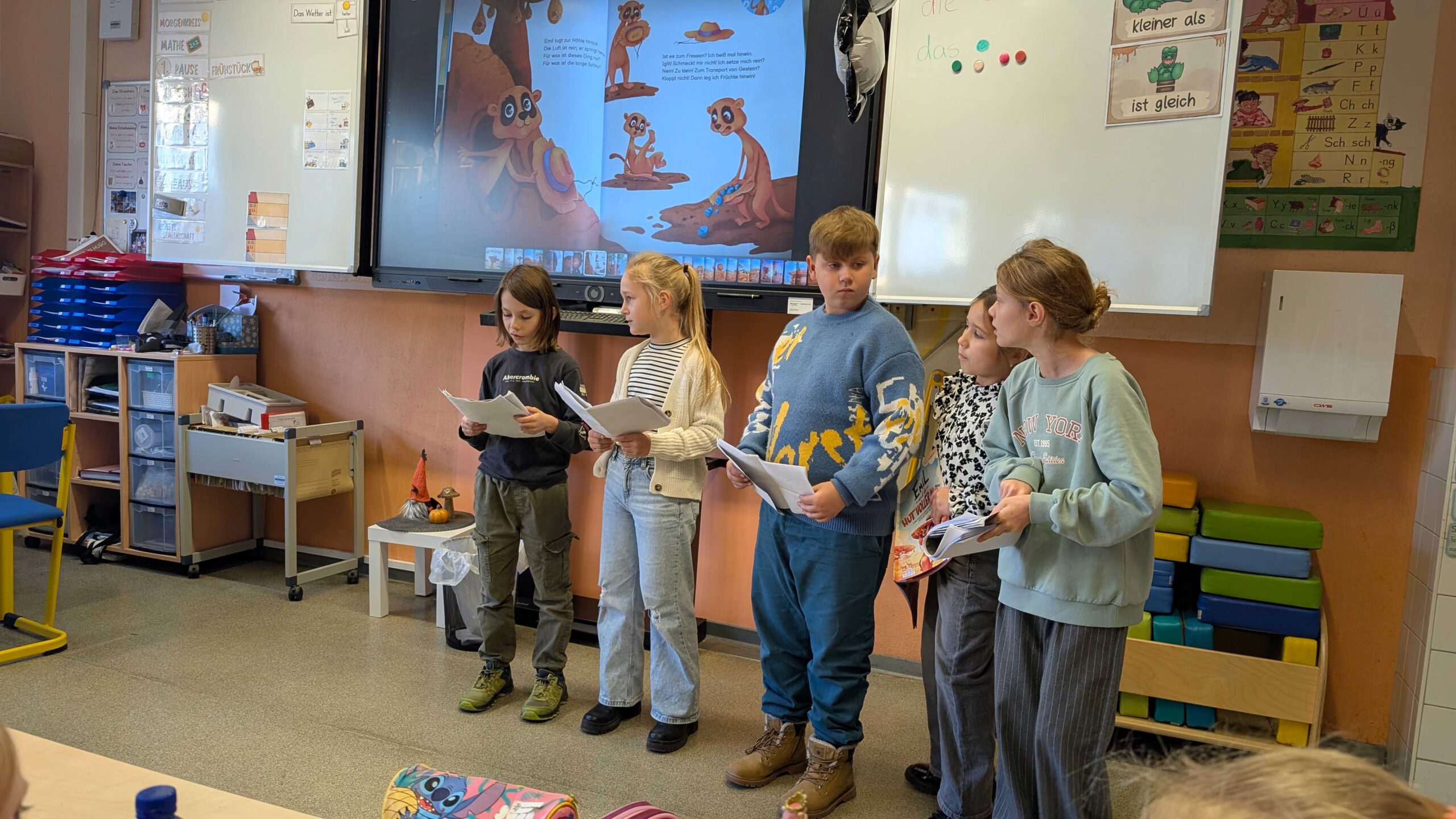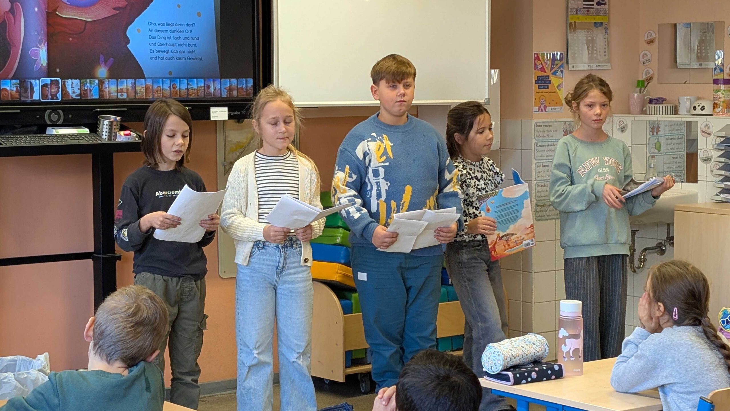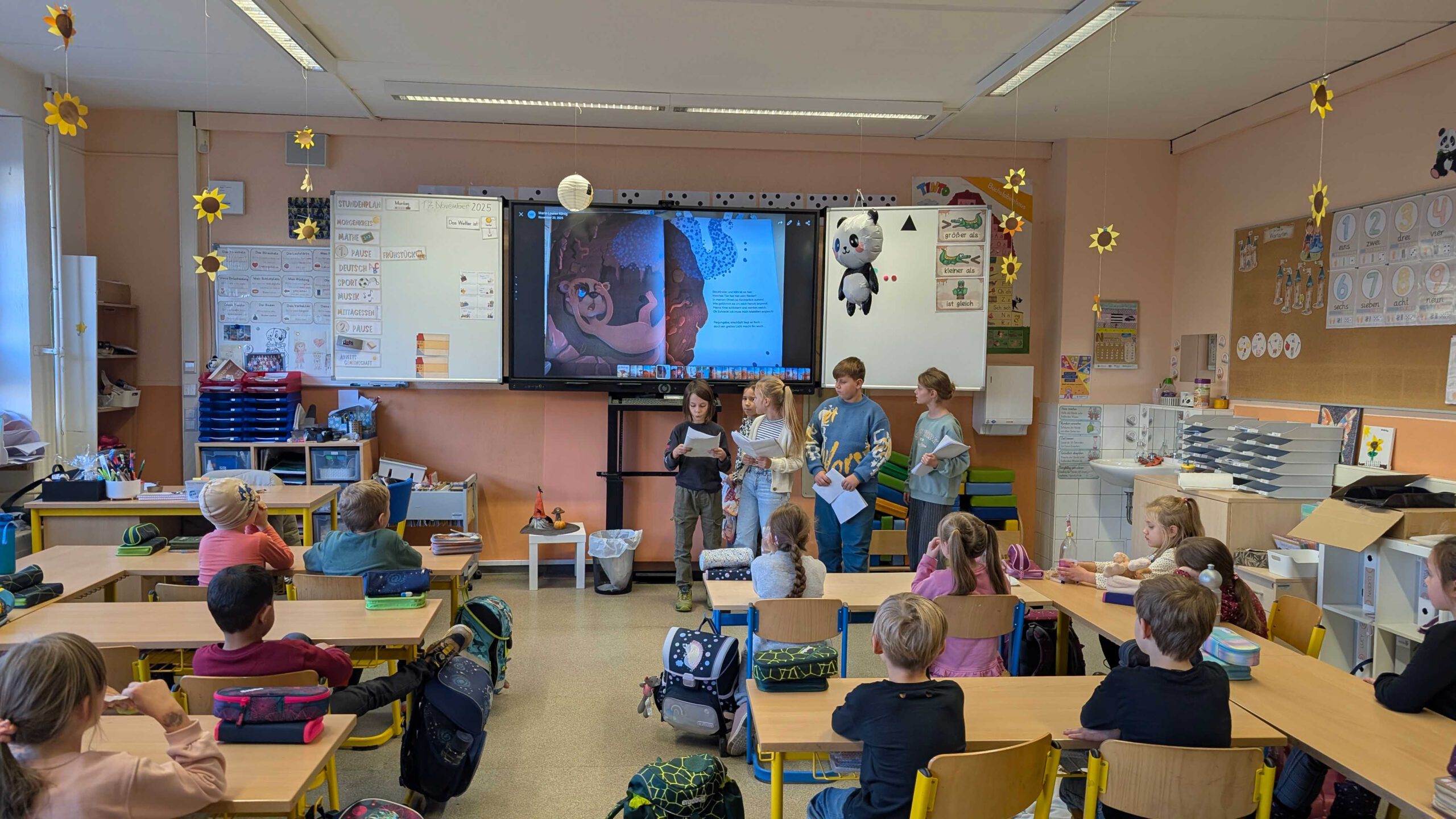 und auch Frau Laqua kam vorbei um den 3. Klassen aus dem Buch „Die Schule der magischen Tiere“ vorzulesen.